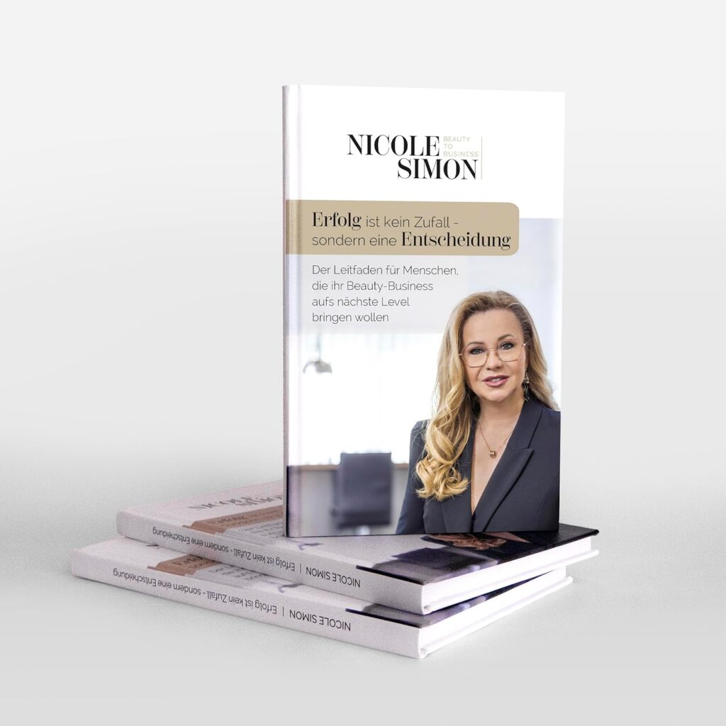 „Erfolg ist kein Zufall — sondern eine Entscheidung: Der Leitfaden für Menschen, die ihr Beauty-Business aufs nächste Level bringen wollen” ist das neue Buch von Nicole Simon. Dieses Buch ist für alle, die im Beauty-Business mehr wollen — mehr Sichtbarkeit, mehr Selbstvertrauen, mehr Erfolg, ohne sich zu verbiegen. Sie sagt: „Mein Buch ist für alle, die nie aufgehört haben zu träumen – und für jene, die gerade erst damit anfangen.“