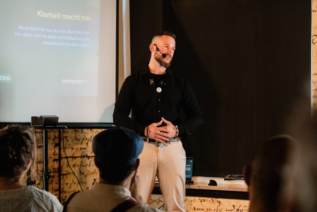 Und nochmal zum Thema Schule, weil ich das doch lobend hervorheben muss — mal abgesehen von unserem Bildungssystem, denn das ist ein anderes Thema in einem großen System: Ich war hier zum Beispiel gerade südlich von München in zwei Gymnasien unterwegs, hatte Sessions mit den 12. und 13. Klassen und habe dort eine Keynote zum Thema „Leben” gehalten (Da sind unter anderem die Themen Beruf, menschliche Beziehung und Geld verdienen etc. drin.). Nach der Keynote bin ich dann einen Tag lang mit einer Gruppe von Schülerinnen und Schülern in eine Reflexionssession gegangen, wo wir unter anderem Übungen machen zu den Fragen „Was kann ich? Was sind meine Stärken? Was ist mir wichtig? Was sind meine Werte und was habe ich für Lebensziele und Träume?” Und da sind die tollsten Sachen gekommen! Da muss ich wirklich diese Schulen und auch die Lehrer hervorheben, die das möglich machen, weil das ich mir damals gewünscht hätte. Da sind so tolle junge Menschen, wo ich denke, wie cool seid ihr denn!? Auch die Q&A Sessions in den die letzten zehn Minuten waren der Hammer, denn da wurden viele tiefgründige Fragen gestellt. Aber sicher kann man das nicht auf die Gesamtheit übertragen, das muss man auch ganz klar sagen.